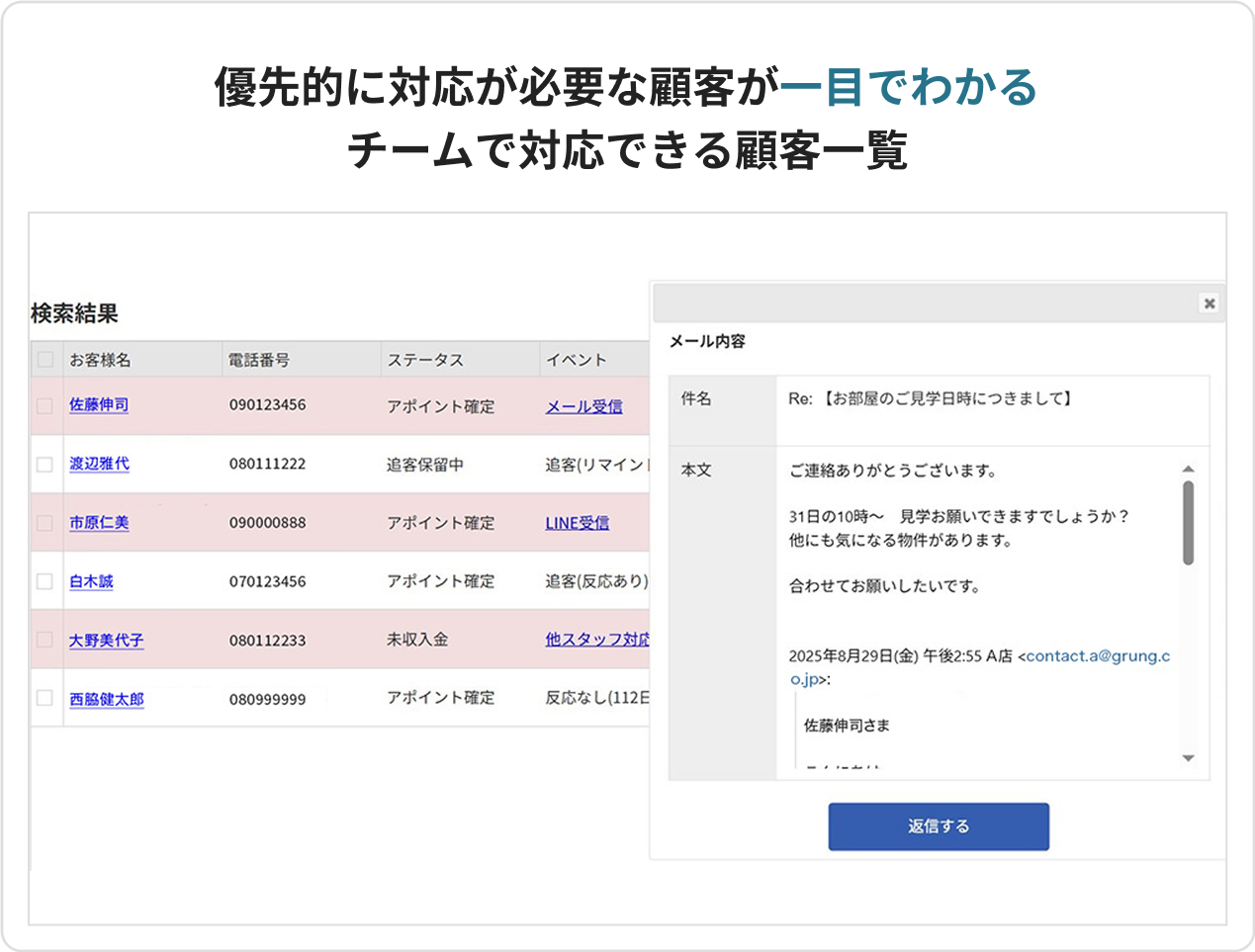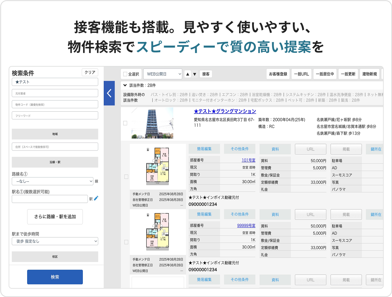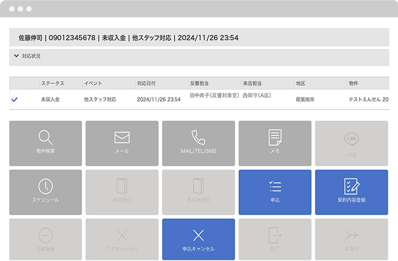 業務効率化を徹底的に追求した、賃貸仲介業務に欠かせない機能です。顧客管理