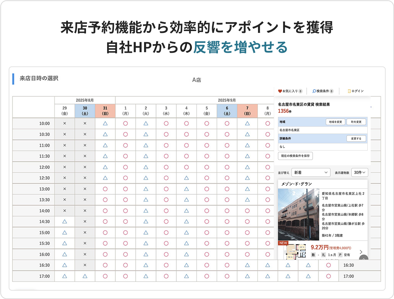 カレンダーと連動した予約機能でアポイントを獲得。